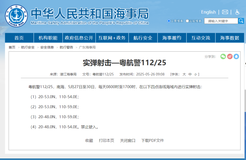 据中国海事局网站消息,湛江海事局发布航行警告十大合法配资,5月27日至30日,每天8时至17时,南海部分海域进行实弹射击,禁止驶入。